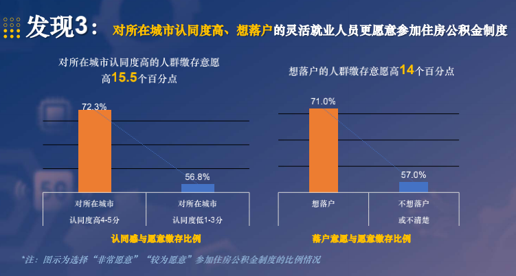 调研结果显示,如果灵活就业人员对城市的认同感很高,就能极大提高缴纳意愿。所以说,个人对城市的认同感,是影响他们是否希望待下来,要不要解决长期住房问题的重要维度,值得关注!
