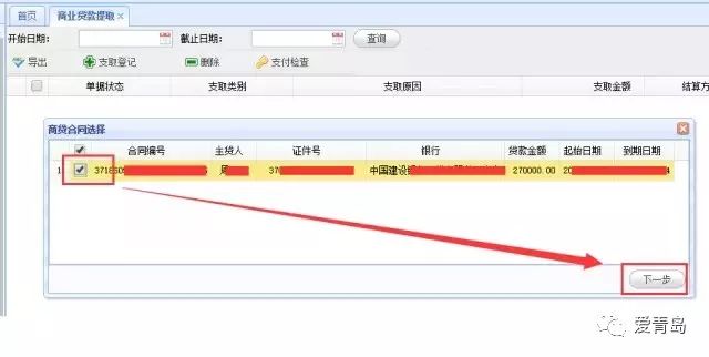 第五步:根据提示,选择合同信息后,点【下一步】。